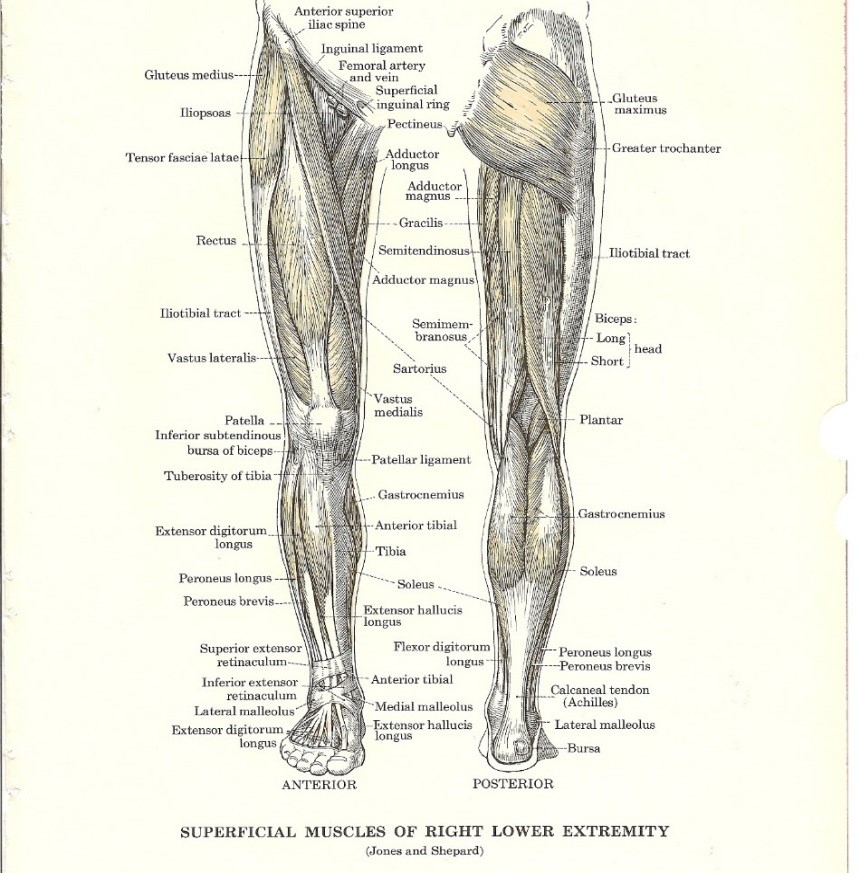 Plesači su u svakom mometu visoko na prstima sa potpuno ispruženim nogama (kolena potpuno u ekstenziji), odupirući se svojoj težini koja teži da savija kolena pod mehaničkim silama prilikom skokova i koraka. Na slici desno je noga potpuno rotirana iz kuka, a zadnja noga se pregiba do pozadine, tako da u jednom skoku harmonično rade mišiči I prednje i zadnje strane noge.