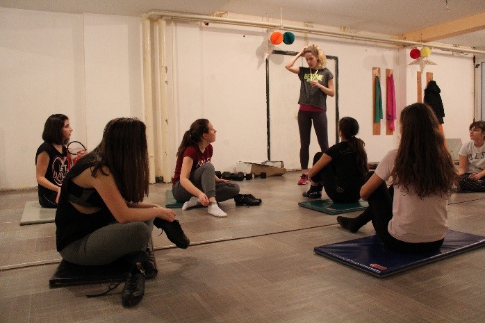 Milena Jovanović, koreograf i trener, po struci diplomirani teoretičar umetnosti i asistent na Univerzitetu u Kragujevcu, koja već 7 godina drži dečije treninge, kaže da je najteži sam početak rada sa novom dečijom grupom, postaviti sve, rasklimatati ih. To sve zahteva naporan rad i mnogo priče. Nekad je potrebno i malo mašte ne bi li osmislio zanimljive, a opet korisne vežbice za decu. Upravo iz tog razloga, Milena je uvela dečije igre poput ledenog čike ili šugice u vežbe zagrevanja, kao i nagrade u obliku stikera i pečata. Pored toga, tu je i famozni „irski poligon’’ koji obuhvata i vežbe snage i koordinaciju, a koji deca obožavaju.